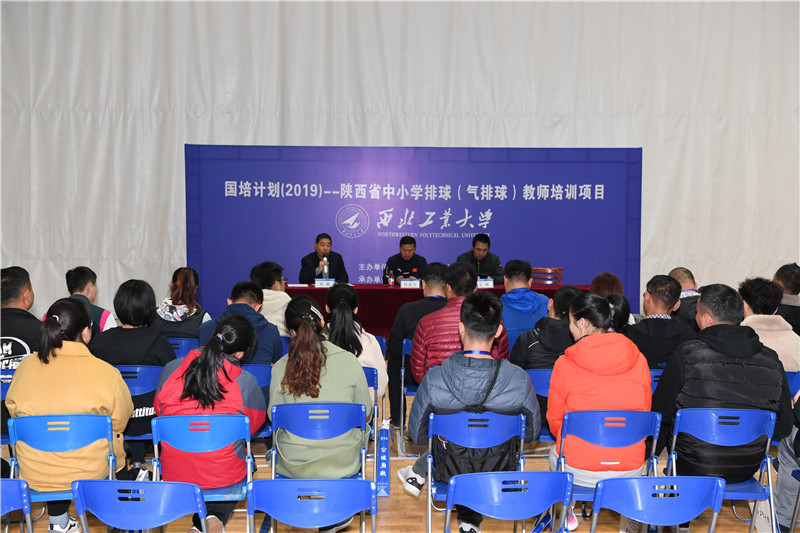 伟德国际1949官方网站新闻网11月12日电(杨梦晨 高大海)11月11日下午14:00,由陕西省教育厅主办,伟德国际1949官方网站承办的“国培计划”(2019)——陕西省中小学排球(气排球)教师培训项目在伟德长安校区翱翔体育馆副馆举行开班典礼。来自全省各个县、市、区的近50名中小学教师将在伟德进行为期8天的培训学习。伟德国际1949官方网站体育部党总支书记陈建军、副主任王轲、运动技能培训中心主任张衡参加开班仪式。