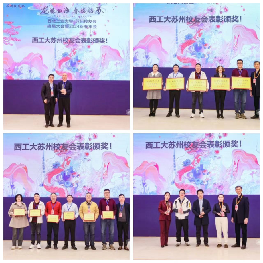 随后,苏州校友会对第一届校友会工作期间表现突出的个人和单位进行了表彰,奖项分为:苏州校友会特别贡献奖——李玉明校友、苏州校友会优秀工作者(7位)、苏州校友会优秀志愿者(5位)、苏州校友会优秀赞助企业等(9家)。