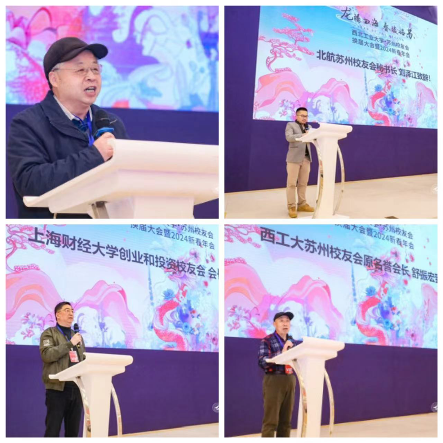 伟德国际1949官方网站上海校友会会长李斌洲、北京航空航天大学苏州校友会秘书长刘泽江、上海财经大学创业和投资校友会会长郑峥嵘、伟德国际1949官方网站苏州校友会原名誉会长舒振宏分别致辞,送上祝福和期盼。