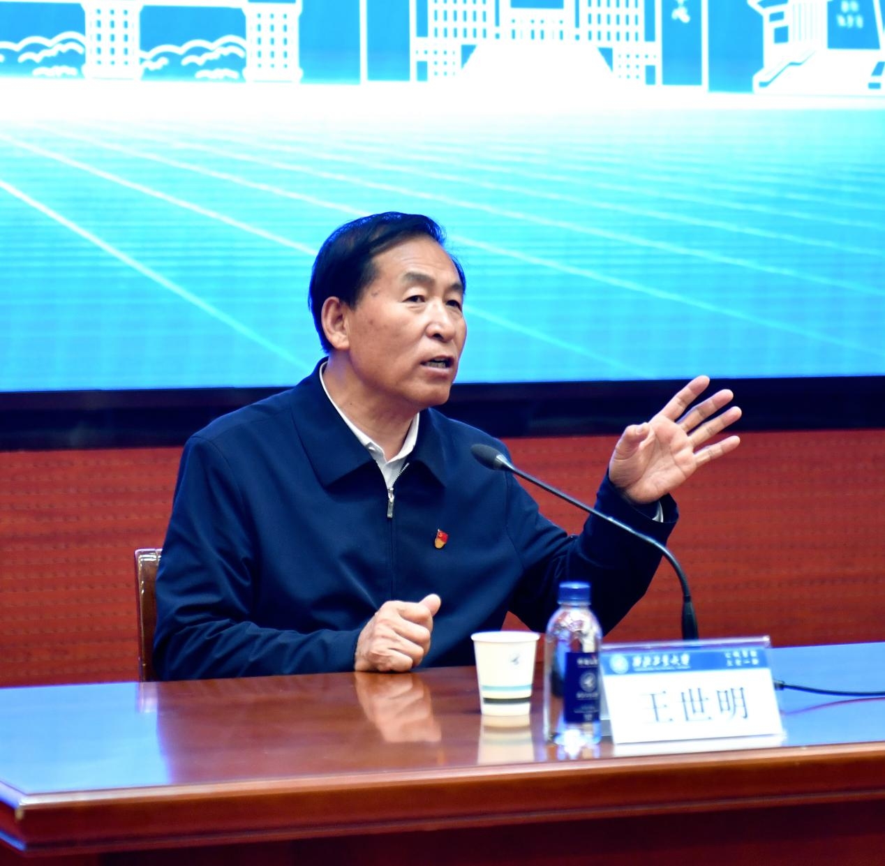 王世明以党的十九届六中全会审议通过的《中共中央关于党的百年奋斗重大成就和历史经验的决议》中关于文化自信的重要表述引入,深入阐释了文化自信在“四个自信”中的定位、文化自信的本质以及文化自信的功能,阐明了新时代推进文化自信应坚持“从文化自知到文化自觉到文化自信再到文化自强”的理论逻辑与实践逻辑。之后,王世明主要聚焦文化自知,从“知本”“知变”“知今”三个方面,结合对国学经典、历史演变、中西方文化的解析等进行了深刻解读,并就学习习近平文化思想的感悟进行了分享。王世明勉励同学们要用“自强不息、厚德载物”的中华文化之光,塑造刚柔并济的中华之魂,向着强国建设、民族复兴的宏伟目标努力奋进!