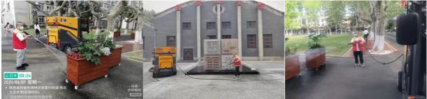 春季学期以来适时增加洒水的频次,并根据友谊校区特点不断调整,将上午第一次的洒水时间提前至早七点,下午最后一次的洒水时间延长至晚七点,中间时段避开高峰期进行多次洒水作业,有效确保了道路的合理湿度,起到净化空气,调节校园小气候的作用。