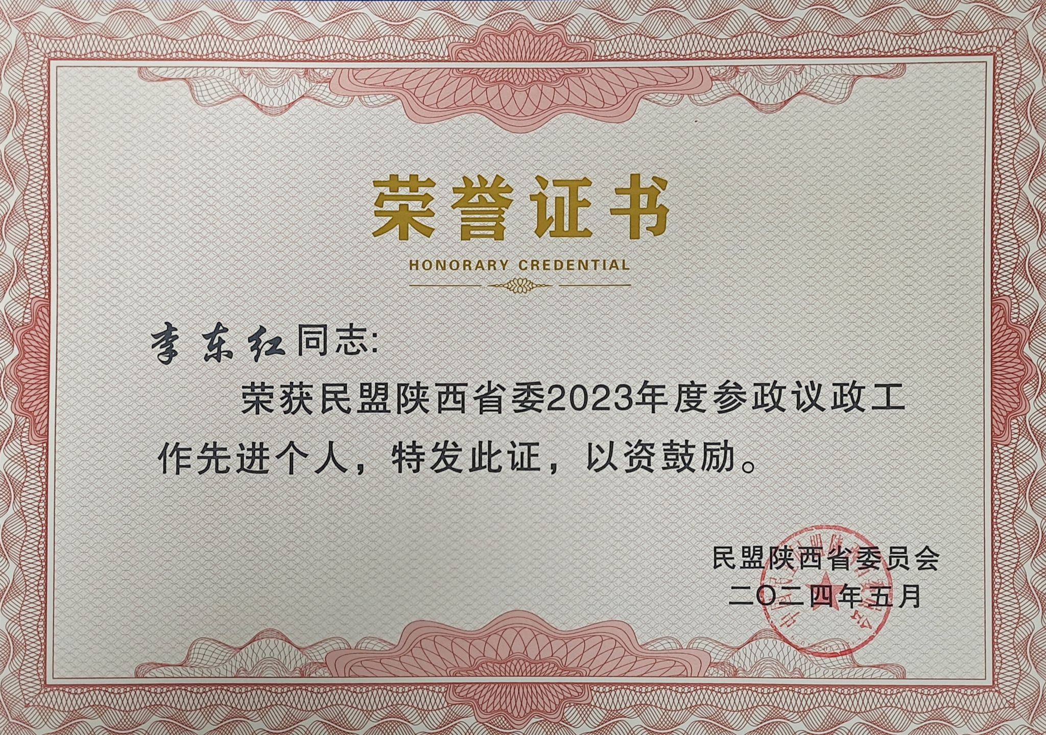 会议传达了民盟中央2024年参政议政工作会议精神,通报了民盟陕西省委2023年度参政议政工作情况,宣布了2024年度民盟陕西省委拟开展调研课题,宣读了《关于表彰民盟陕西省委2023年度参政议政工作先进单位及先进个人的决定》并进行了表彰。民盟伟德国际1949官方网站委员会荣获“民盟陕西省委2023年度参政议政工作先进集体”,李东红、李波、张卓、高宇等四名盟员荣获“民盟陕西省委2023年度参政议政工作先进个人”,青年委员高宇承担民盟中央重点调研课题一项。