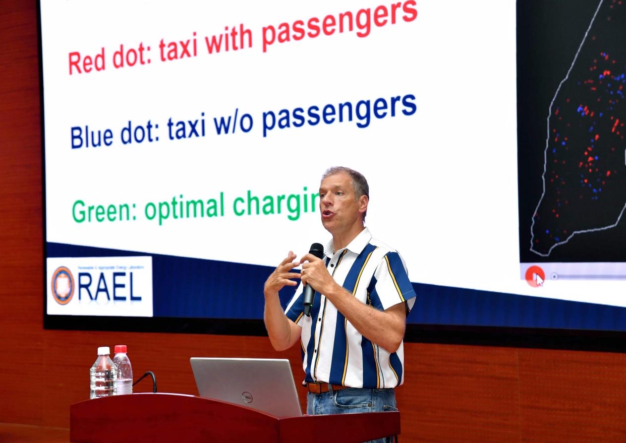 随后,丹尼尔·科曼教授深刻阐释了当下不容忽视的全球气候变化以及温室气体排放问题。他指出:“尽管各国都在积极推进减排工作,但目前的进展仍与预期目标相距甚远,技术创新是降低可再生能源成本的关键所在”。同时,深入剖析了学习曲线(Watt's Law)对技术进步的巨大影响,带领同学们从根本上认识能源创新原理。最后,对加州、中国、非洲的三个示例进行了详细分析,生动展示了大数据、人工智能、新能源等多领域结合将是未来能源转型的新思路,产业融合发展也将成为新趋势。