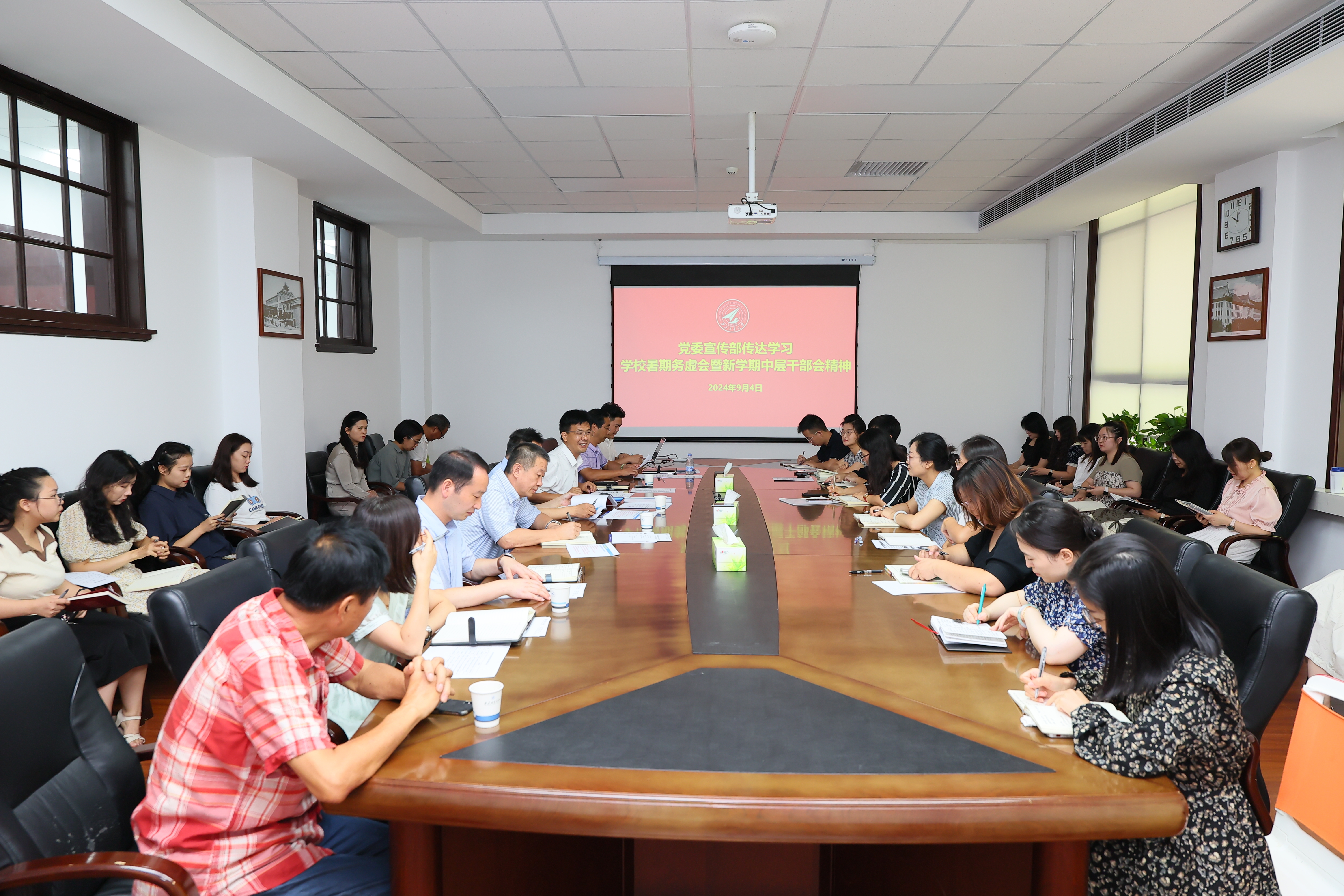 9月4日,党委宣传部召开全体会议,传达学习学校暑期务虚会暨新学期中层干部会精神,研究部署贯彻落实举措。党委副书记吕卫东参加会议。会议由党委宣传部常务副部长张富利主持。