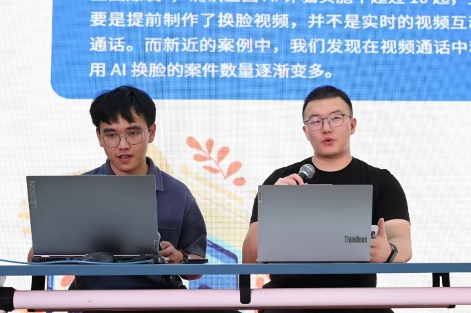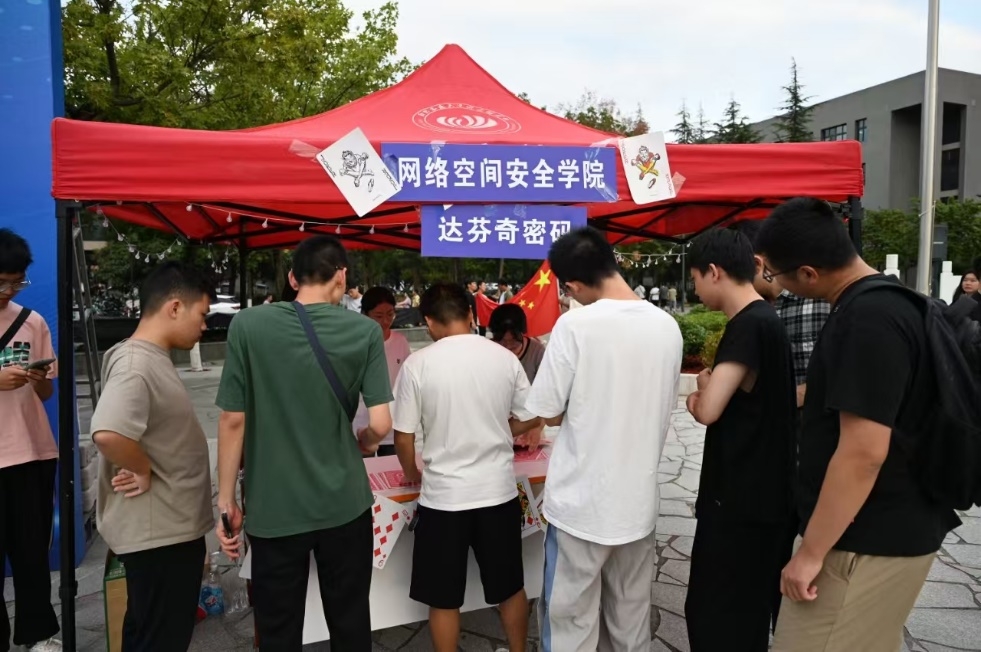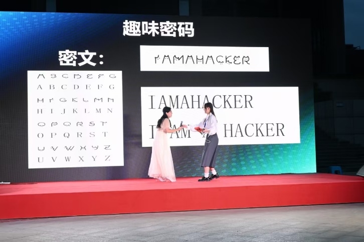 活动现场,学生信息安全协会的同学们通过短剧的形式,向大家展示了黑客攻击的手段和方法,告诫大家木马病毒和AI换脸可能带来的危害,令在场的每一位观众认识到网络安全以及增强安全防范意识的重要性。除了“黑客”小短剧,来自大学生艺术团民乐队和网络空间安全学院的同学们为大家带来了精彩的才艺表演,充分活跃了现场的气氛。探索解密环节,同学们上台破解了一个个趣味密码,亲身体验了解密和挑战的乐趣。在知识竞答环节,同学们踊跃参与,争相回答,在欢快的气氛中学习到网络安全的相关知识。