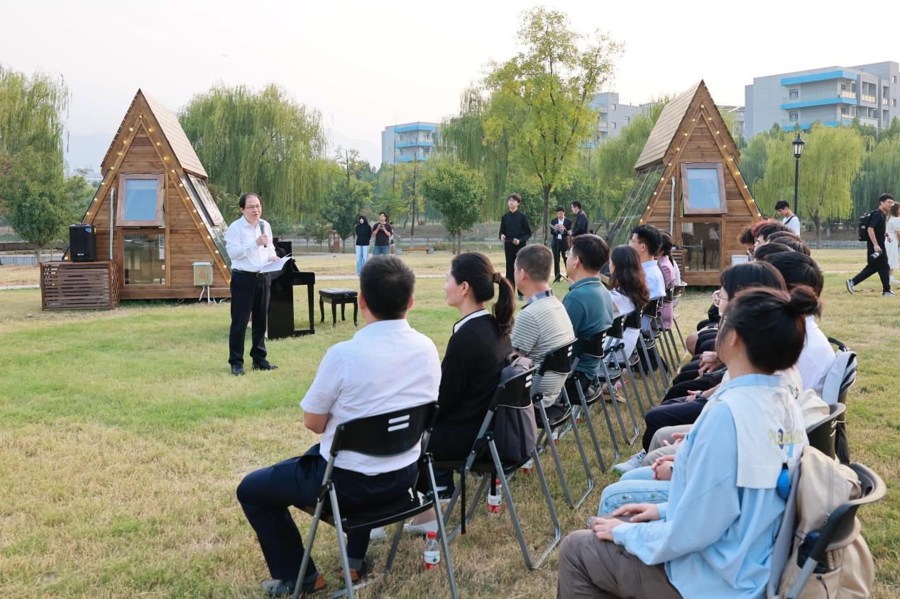 9月23日下午,长安校区钢琴木屋启用仪式在启翔湖畔隆重举行。党委常委、副校长、学校美育工作委员会主任杨益新,党委宣传部常务副部长张富利、信息化管理处处长薛静、党委保卫部副部长王坤庆、后勤部办公室副主任郝东兴、后勤集团党委副书记邱若娟、艺术教育中心主任张清江、艺术教育中心首席专家刘惠、艺术教育中心副主任初建杰、马玥及艺术教育中心老师、学生代表共同参加。